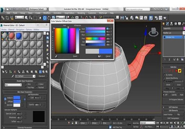 - متریالها را از کتابخانهٔ آمادهٔ تری دی مکس انتخاب کنید.